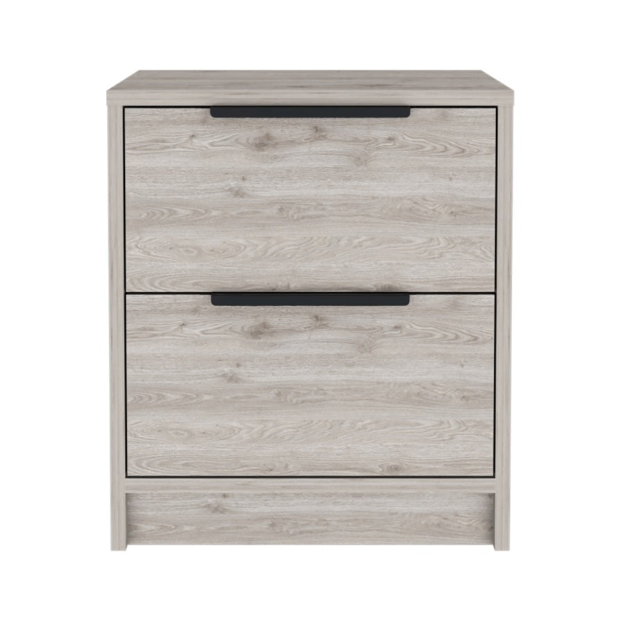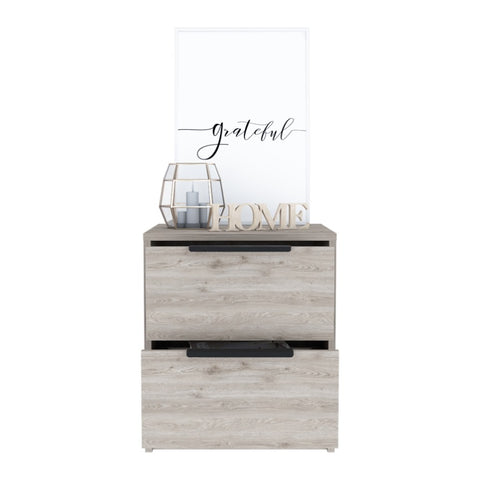 Kaia Nightstand , End Table, Side Table Two Drawers, Metal Handle -Light Gray B07091875