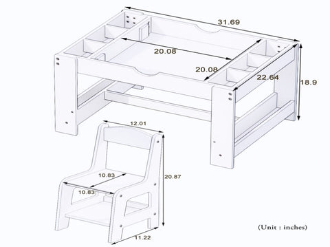 Ample Space:There are 6 storage compartments beside the Lego board, which can be used as storage space for hundreds of Lego bricks.Tabletop is removable to access LARGE storage space underneath to conveniently place additional crafts, Lego or other activities.Two children's bookshelves under the table provide ample space for storing supplies like books and pencils.The bottom of the chairs have removable canvas drawers for storing child's toys, books, etc.