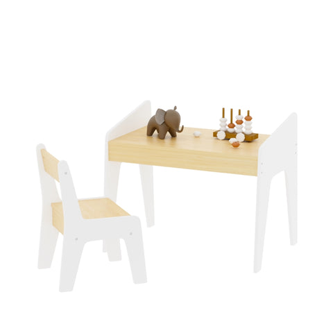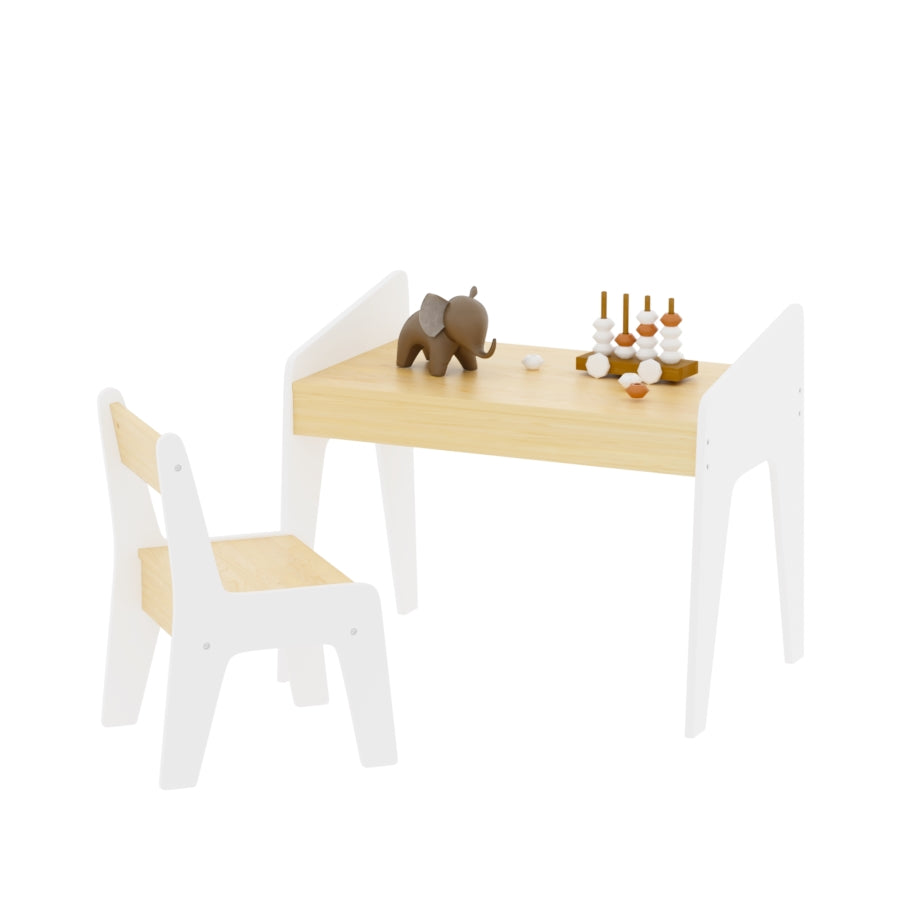 Kids Table Set with One Chair, Wooden Children Study Table, 2-8 Age Kids Funiture , WhiteNatural 21323294