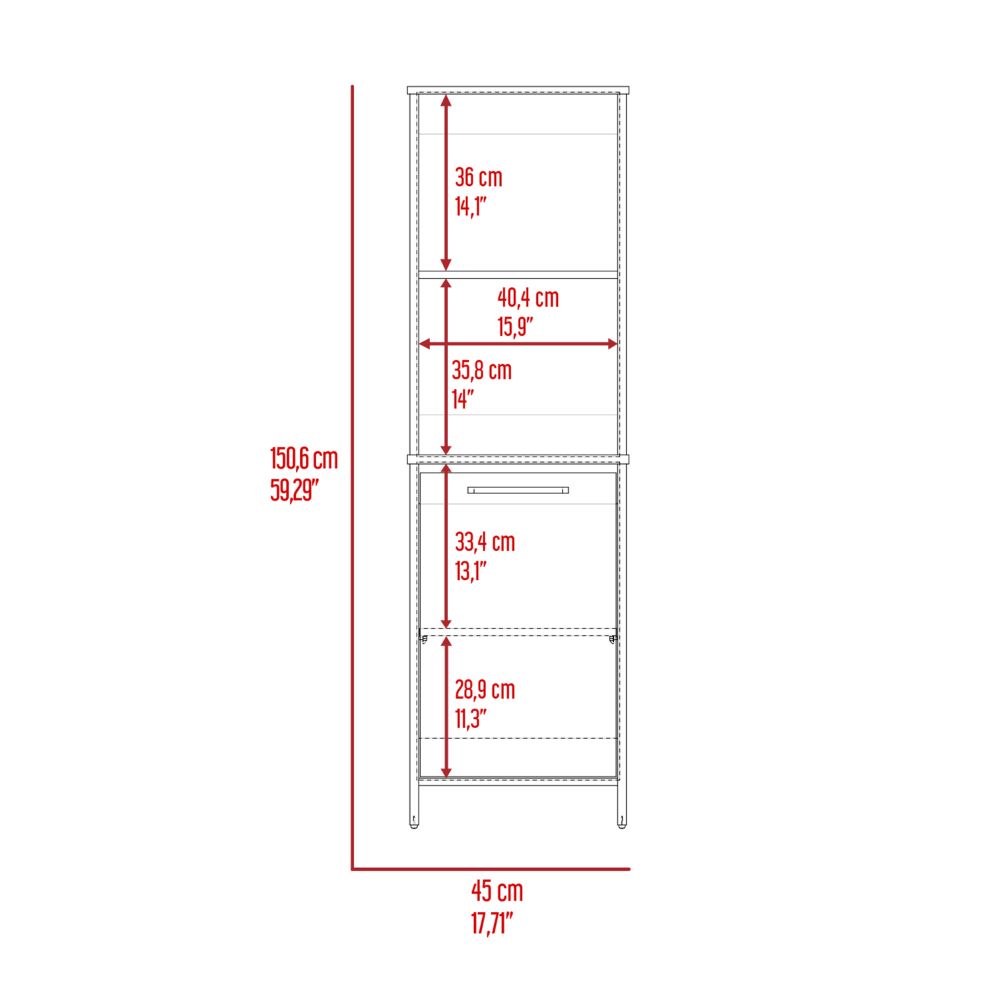 Kitchen Pantry 59" H, Two Open Storage Shelves, Single Door Cabinet, Two Interior Shelves, White B097133148
