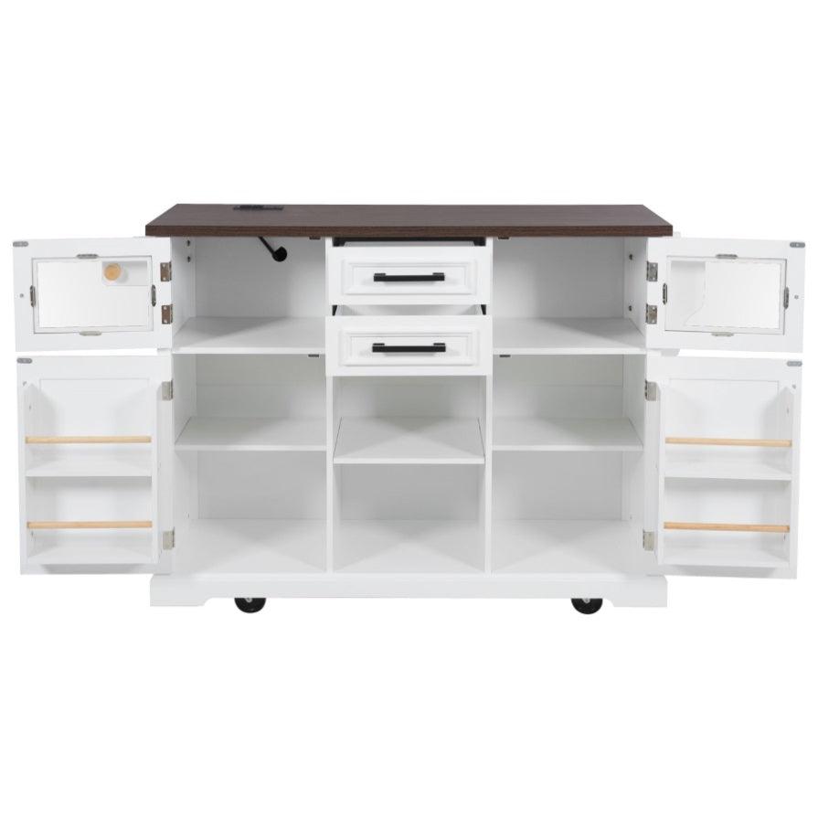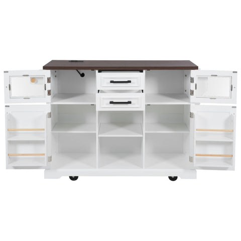 K&K 54.9" Kitchen Island with Drop Leaf, Power Outlet, Kitchen Storage Cart with 4 Door Shelves, N707P300277W