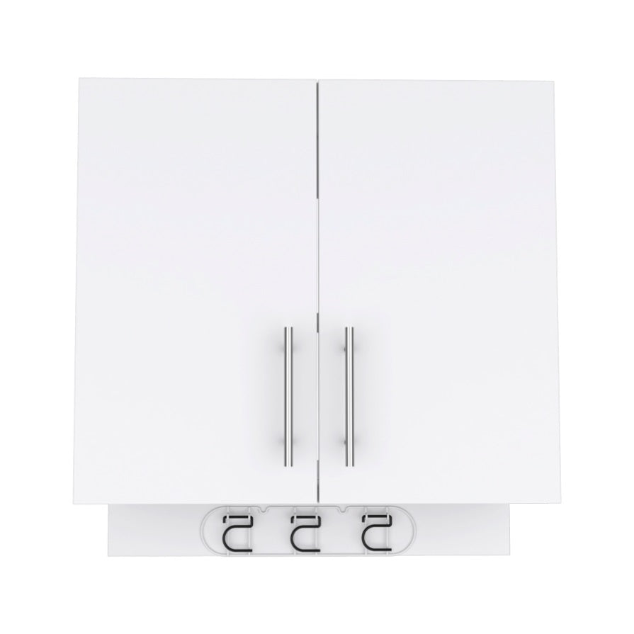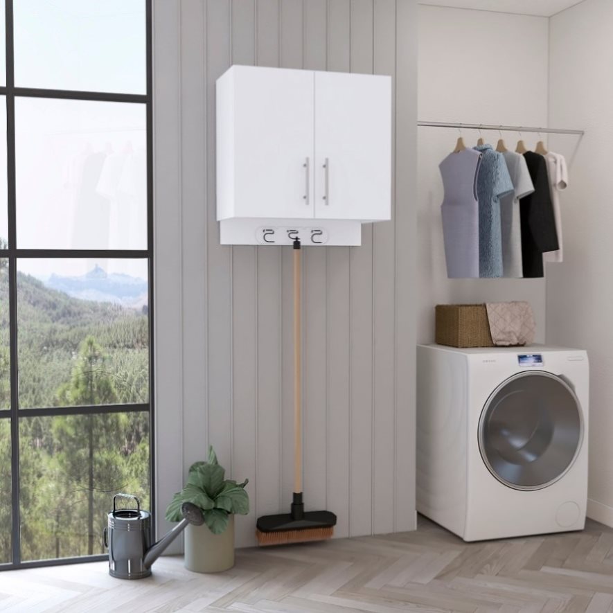 Kymo Wall Storage Cabinet, 2 Doors, Broom Hangers -White B20092125