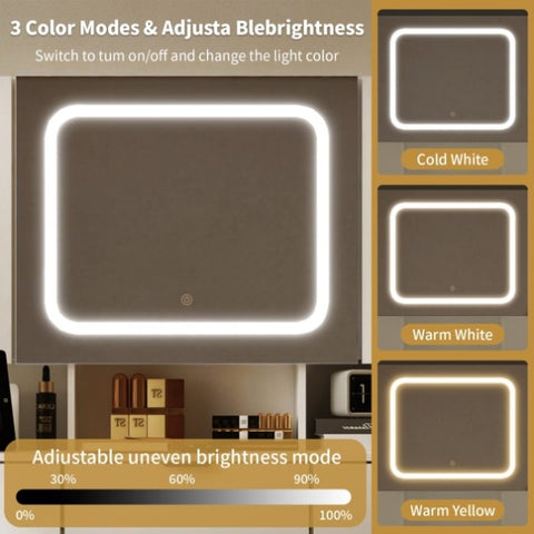 2. 3 Lighting Modes with Adjustable Brightness: The mirror features built-in LED light that offers 3 color lighting modes (warm, natural, cool) and adjustable brightness, ensuring the perfect lighting for any time of day or makeup look.