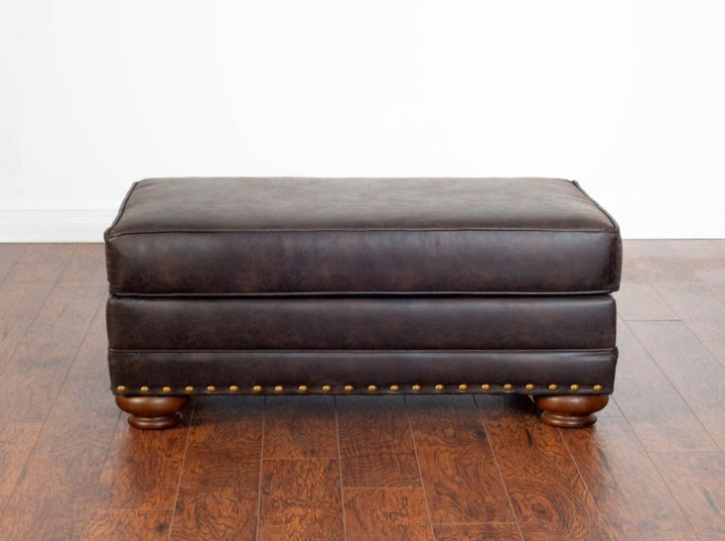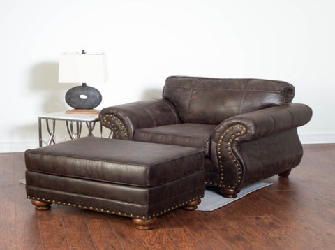 Set includes chair and ottoman. Deep espresso faux leather upholstery, using only hardwood frames, Certi-PUR foam, and durable fabrics that are hand tailored to the piece, this product is manufactured with quality and value