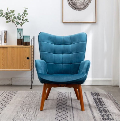 Velvet Tufted Accent Chair with OttomanButton-tufted accents make the Leiria Contemporary Silky Velvet Tufted Accent Chair with Ottoman. Tapering wood dowel legs add mid-century flair. Settle into the generous wingback design to appreciate this chair's smart, welted arms and its matching ottoman. This set includes a lounge chair and matching ottoman. Oak finished legs. Plump foam pads the seat and ottoman top, upholstered in premium soft velvet fabric and diamond-tufted. Choose among available fabric options.