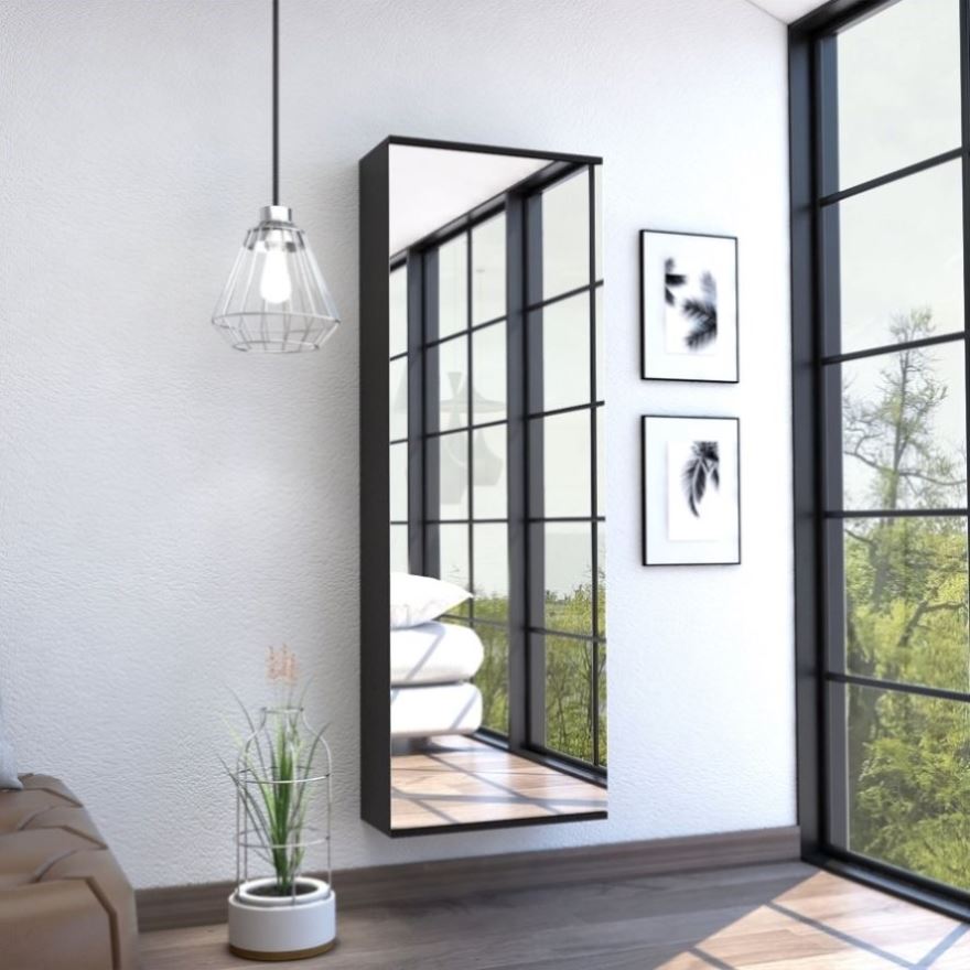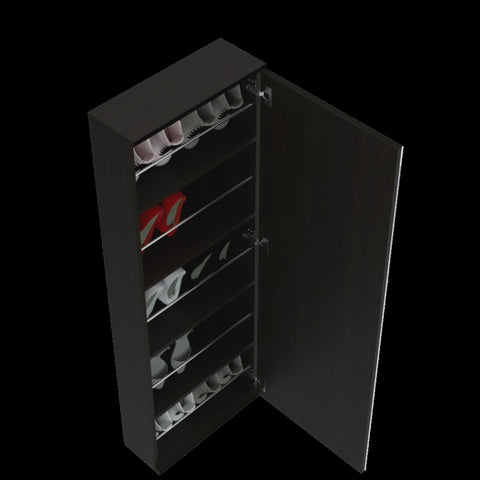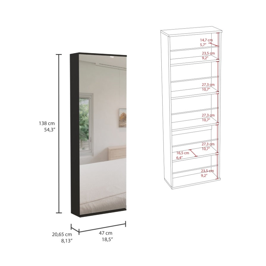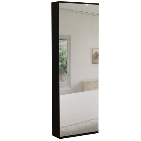 Leto Wall Mounted Shoe Rack With Mirror, Single Door, Capacity For Ten Shoes -Black B20091927