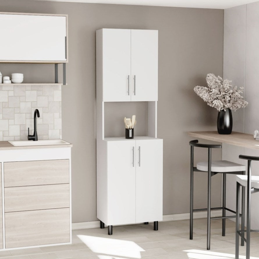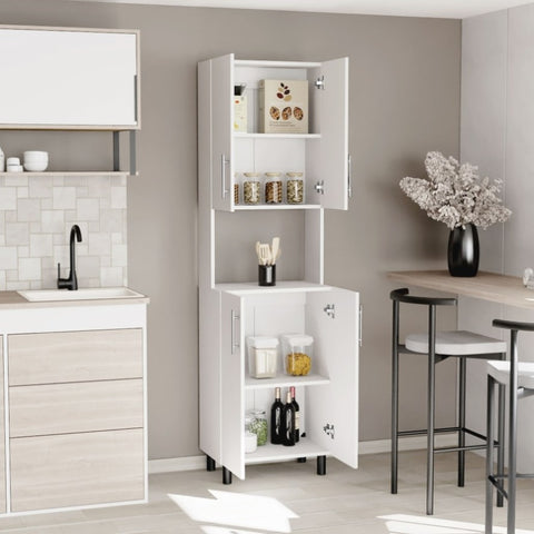 Linden 76,8" Tall Two Double Door Cabinet Kitchen Pantry with Hutch and Five Shelves, Microwave B070P264145