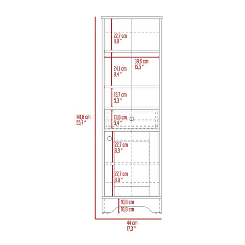Linen Single Door Cabinet 55" H, Three External Shelves, One Drawer, Two Interior Shelves, Light Oak B097133112
