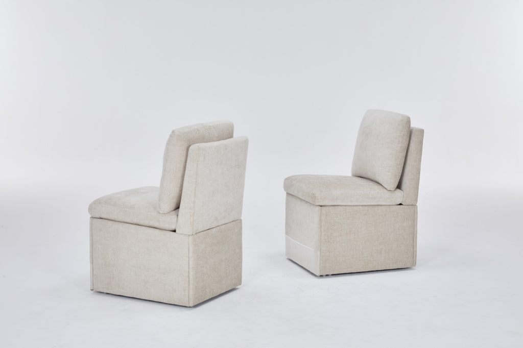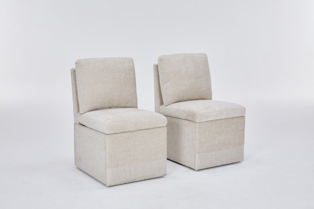Linen Upholstered Armless Dining Chair with Casters and Storage space-set of 2,BEIGE W2069P288877