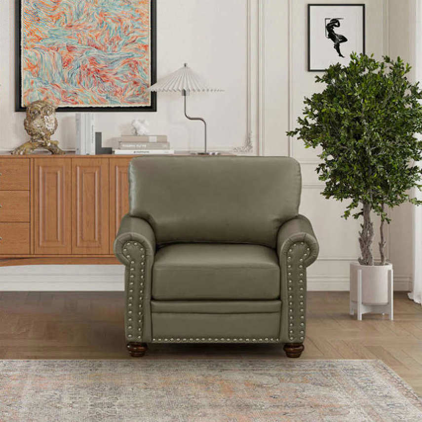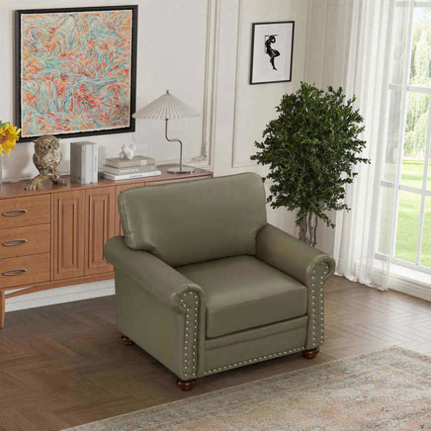 NAILS DECORATION: With silver nails decoration in front of the seat and armrest.