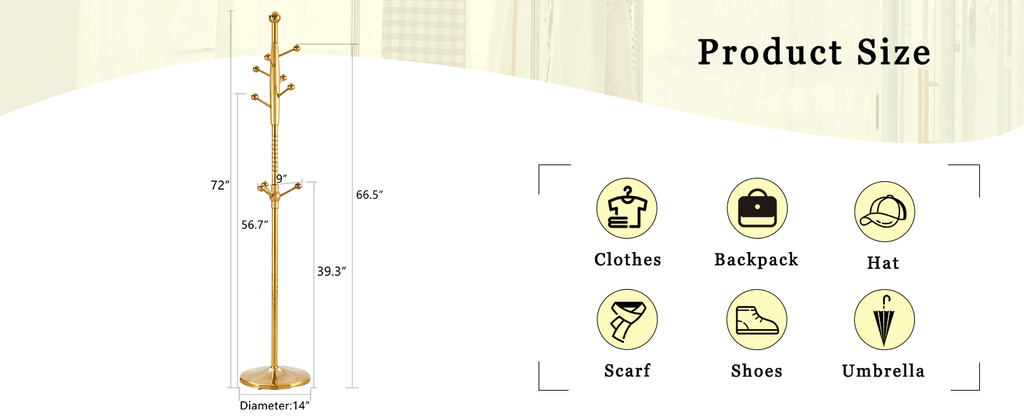 Elevated design: The overall height reaches 72 inches, providing ample hanging space for clothes of various lengths; The chassis diameter is 14 inches, ensuring that the hanger is stable and does not shake.