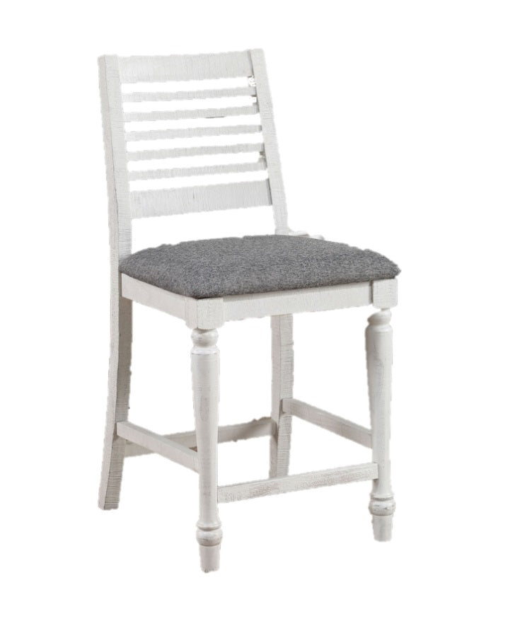 It's a masterpiece of rustic flair--a thoughtful combination of tradition and forward-looking aesthetics. The traditional influences are evident on the turned legs and ladder back design, while the rustic elements such as the two-tone palette brings with it a contemporary vibe. The antique finish elevates this counter height dining chair to an instant classic.