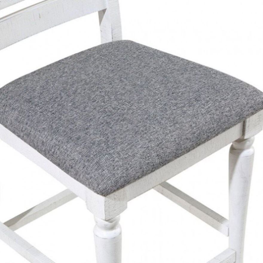 Majestic Rustic Counter Height 2pc Dining Chairs Set Antique White Solid wood Gray Fabric Cushions B011110878
