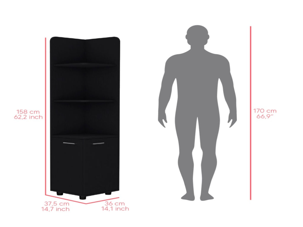 Malibu 62" Tall Double Door Corner Linen Cabinet with Four Shelves Black B200P240242