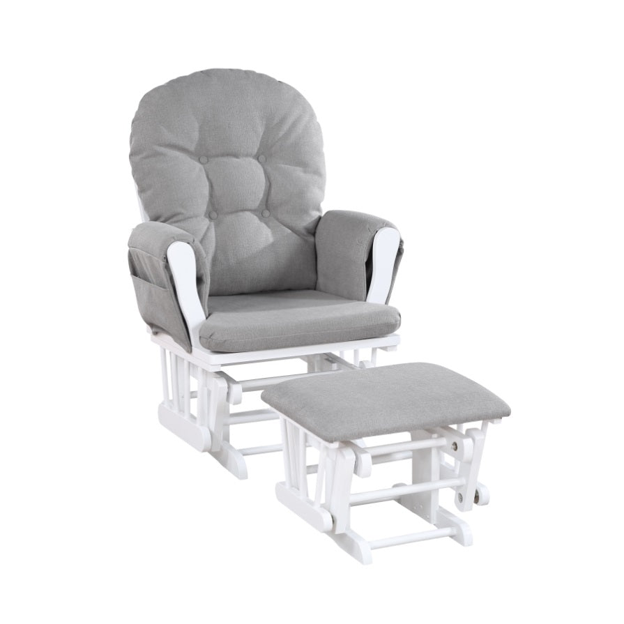 Mason Glider and Ottoman White Wood and Oyster Fabric B022P174719