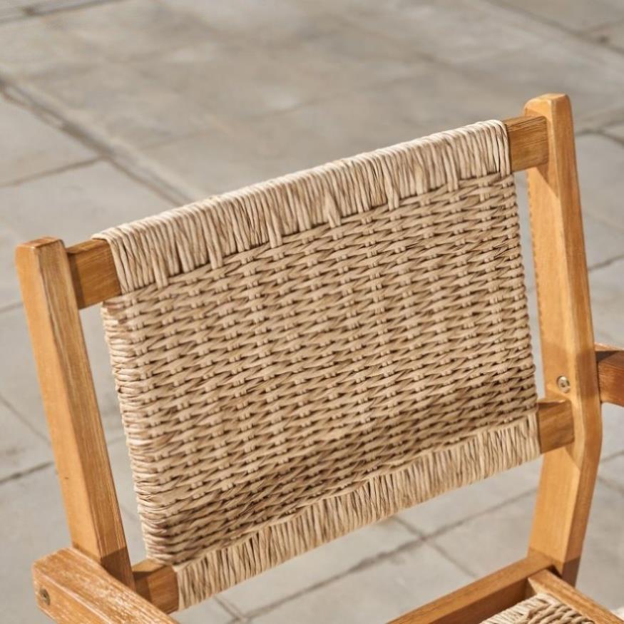 Slatted back, seat and stackable design, wicker straped back and seat for extra comfort