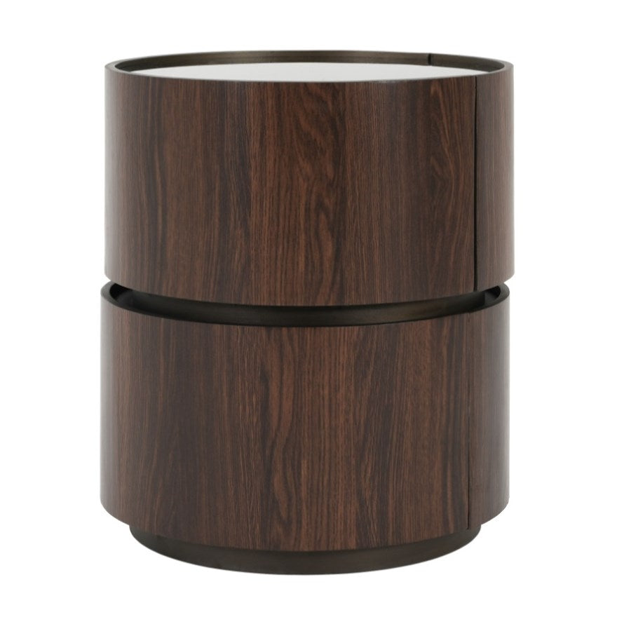 MDF ITALIAN HIGH-GRADE DOUBLE-LAYER STORAGE ROUND SIDE TABLE, BROWN AND BLACK COLOR N770P281243B