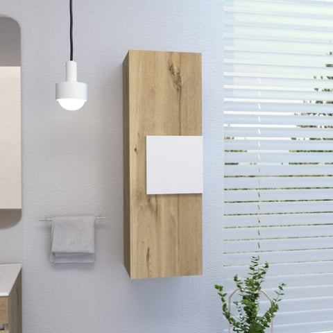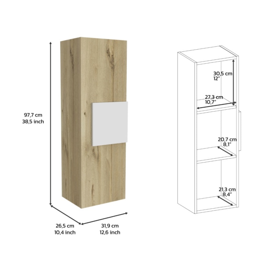Medicine 38"H Single Door Cabinet, Three Shelves, Light Oak / White B097120601