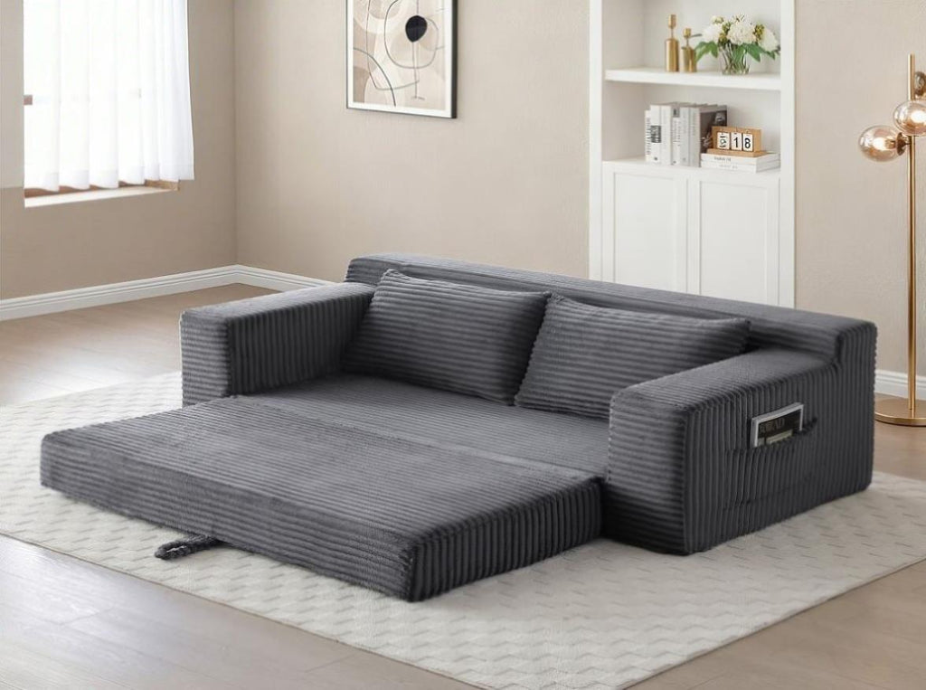 This sofa is equipped with a pull-out bed, which can be pulled out with a hand strap to easily and quickly convert the sofa into a sleeping bed. It can be a comfortable sofa by day and a convenient fold-out bed by night, and it is an ideal lounger for hosting overnight guests and a perfect living room sofa for small space.