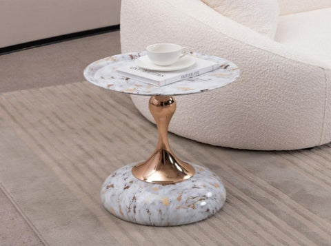 Mermaid Tail End Coffee Table Round Side Table, Modern Metal Pedestal Table, Minimalist Accent Table W2664P232838