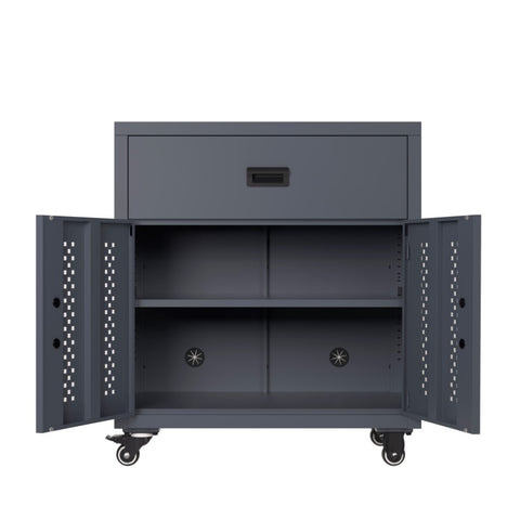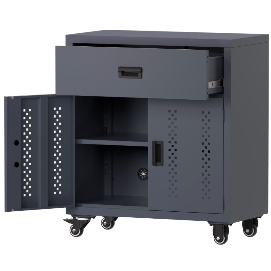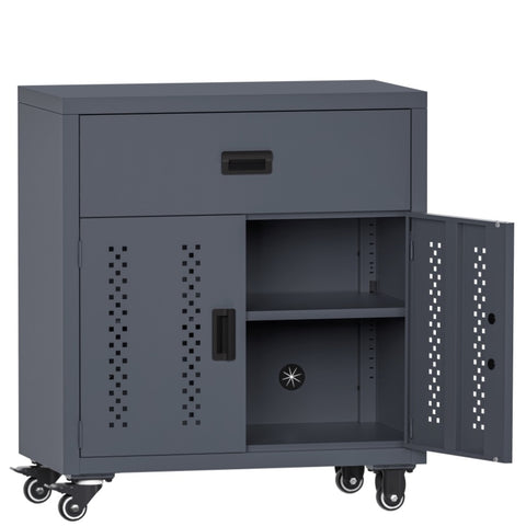 Metal garage storage cabinet lockable door and adjustable shelves, rolling tool storage cabinet W396P305781