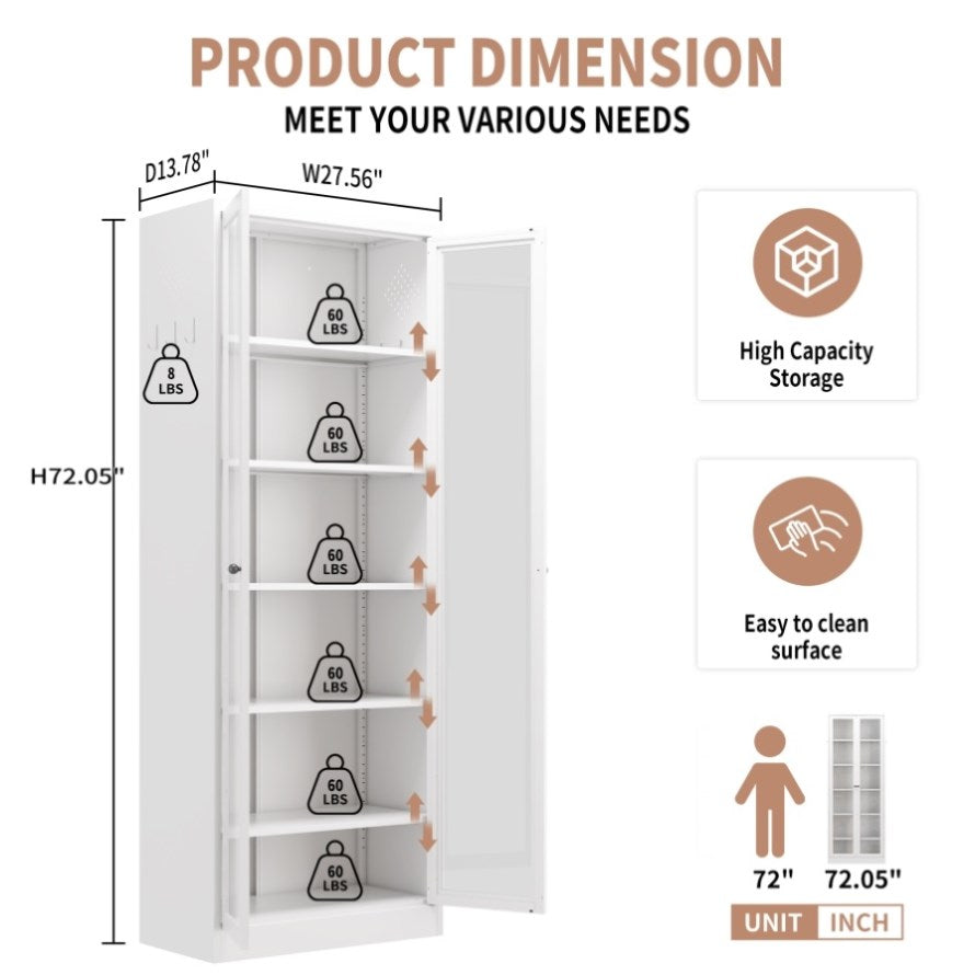 1. ✔️ Industrial-grade steel holds 80 lbs/shelf – 3X stronger than plastic cabinets. 72"H tall & 27.6"W fits bulk groceries & appliances.