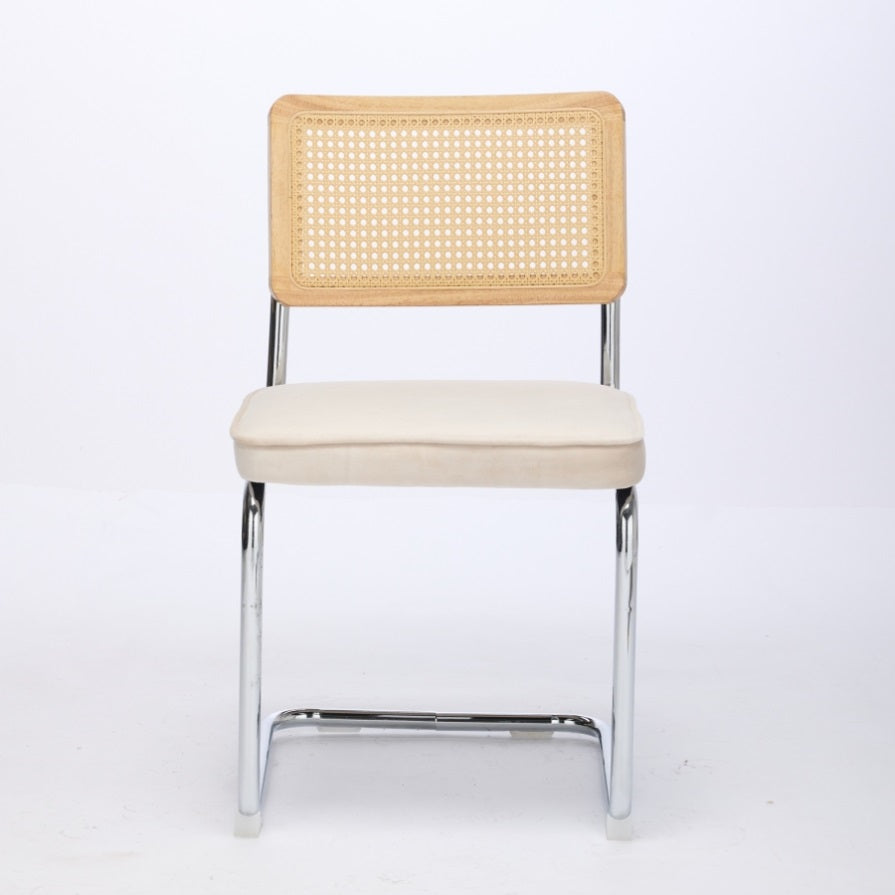 Mid Century Modern Dining Chairs Set of 2, Velvet Accent Chairs with Natural Cane Back & Stainless 64962854