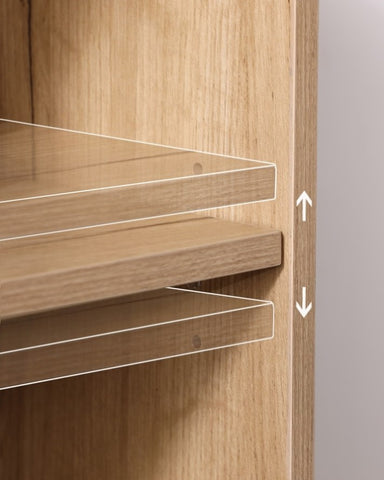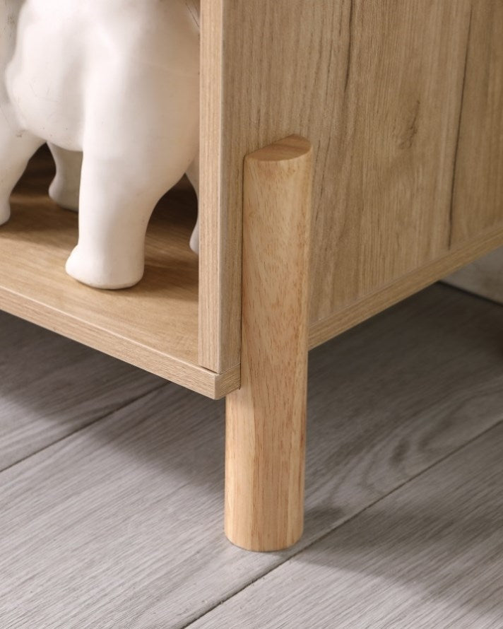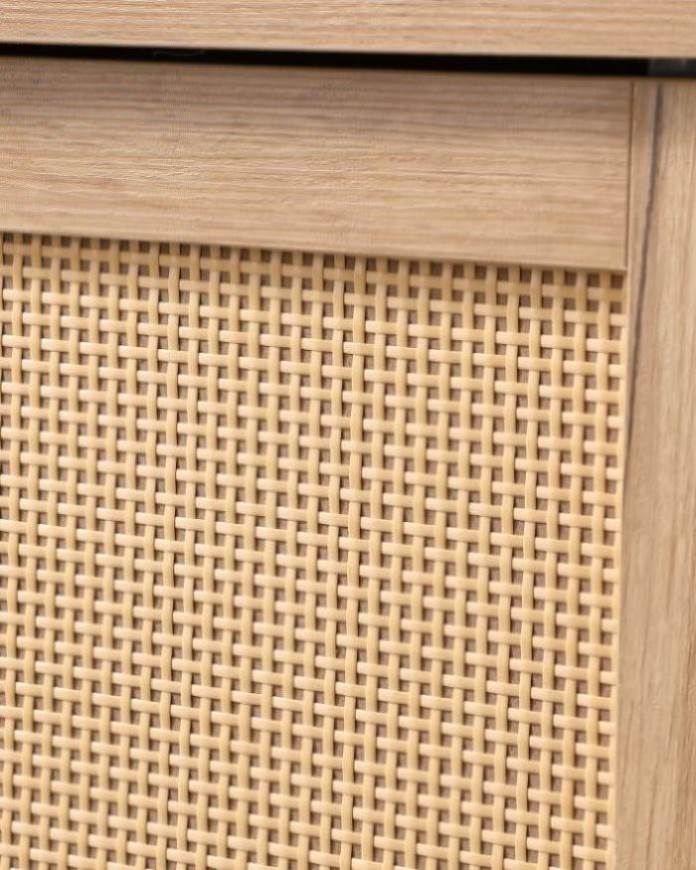 Adjustable Interior Shelves: Behind the rattan doors, you’ll find adjustable interior shelves, allowing you to customize the storage space to fit items of various sizes. Whether it’s dinnerware, linens, or electronics, this cabinet adapts to your needs.