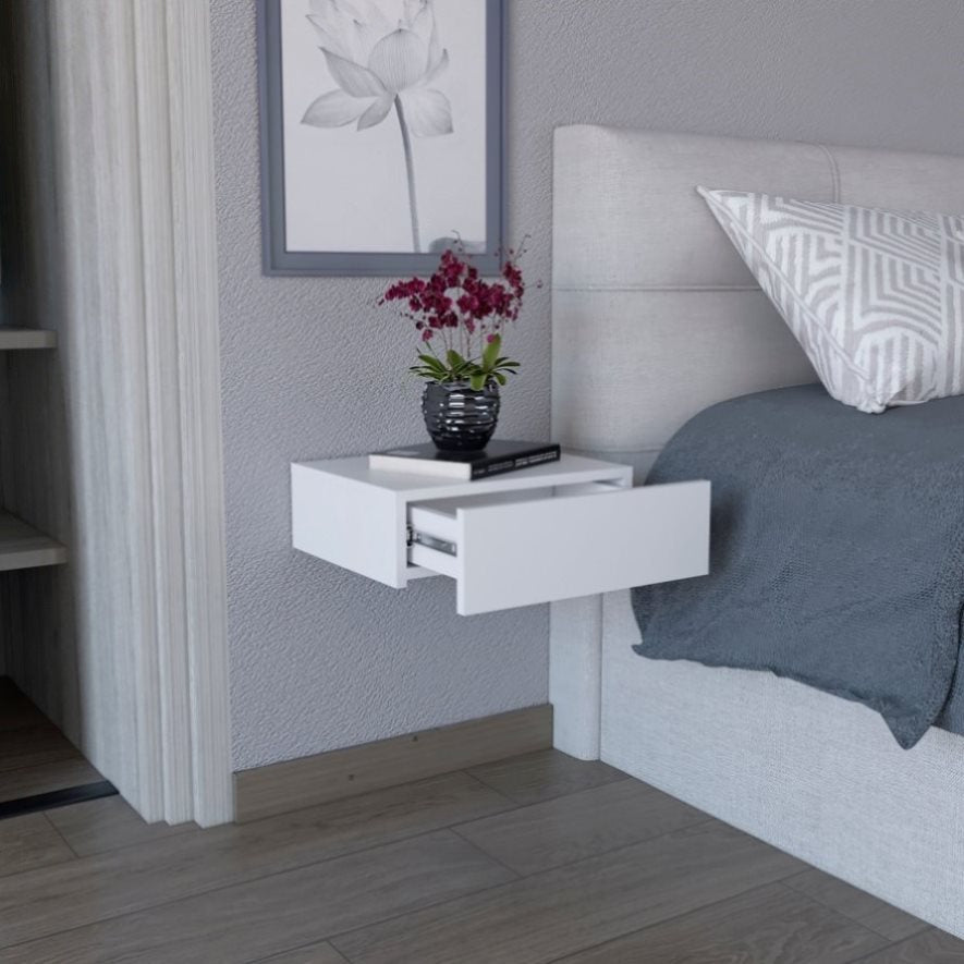 Milano Floating Nightstand , End Table, Side Table Wall-Mounted with Drawer -White -Bedroom B200137822