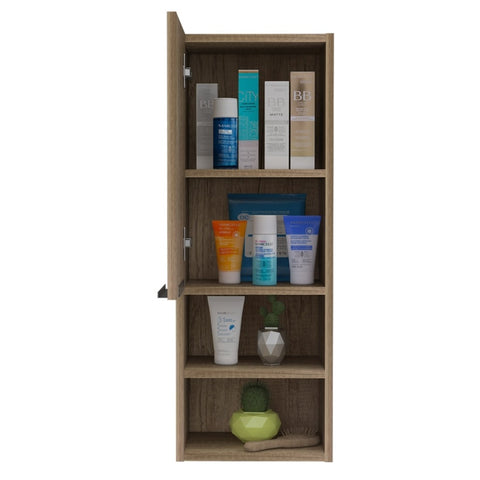 "The Milwaukee medicine cabinet is a very functional and spacious mirror medicine cabinet with great features that will stand out: A cabinet door that will give you an elegant look to your bathroom you so much desire. Inside the cabinet, you will find two interior shelves with plenty of room to keep your medicines, lotions, shampoos, or any other product you regularly use. It has two open shelves at the bottom of this cabinet to place your items elevated from the sink, keeping your bathroom organized and well maintained. It is manufactured with treated engineered wood to protect it from regular exposure to water and humidity in a bathroom. Product dimensions are 11.81"" W x 10.4"" D x 32.17"" H. Light Oak Finish."