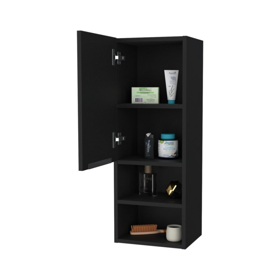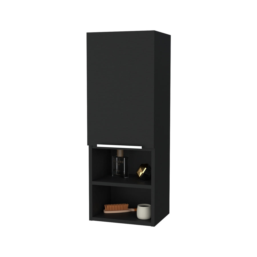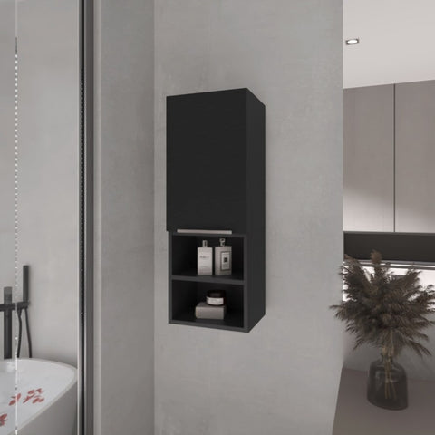 "The Milwaukee medicine cabinet is a very functional and spacious mirror medicine cabinet with great features that will stand out: A cabinet door that will give you an elegant look to your bathroom you so much desire. Inside the cabinet, you will find two interior shelves with plenty of room to keep your medicines, lotions, shampoos, or any other product you regularly use. It has two open shelves at the bottom of this cabinet to place your items elevated from the sink, keeping your bathroom organized and well maintained. It is manufactured with treated engineered wood to protect it from the regular exposure to water and humidity in a bathroom. Product dimensions are 11.81"" W x 10.4"" D x 32.17"" H. Black Finish. "