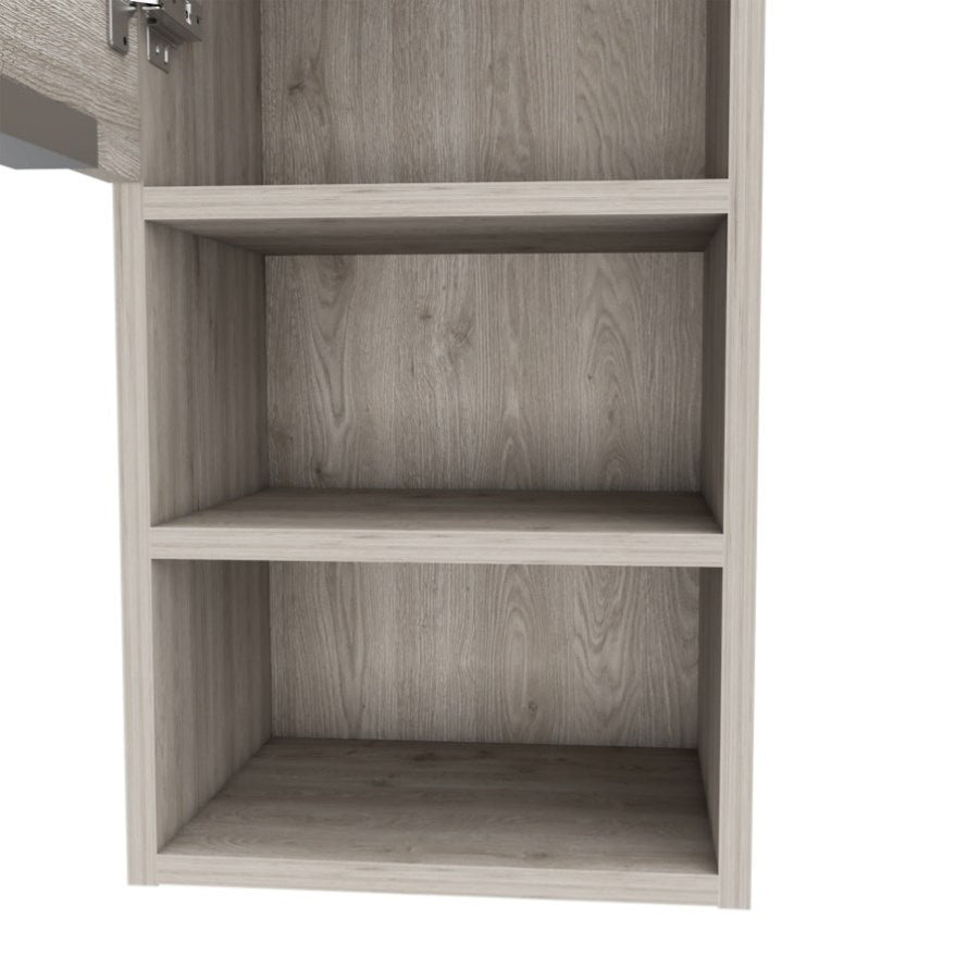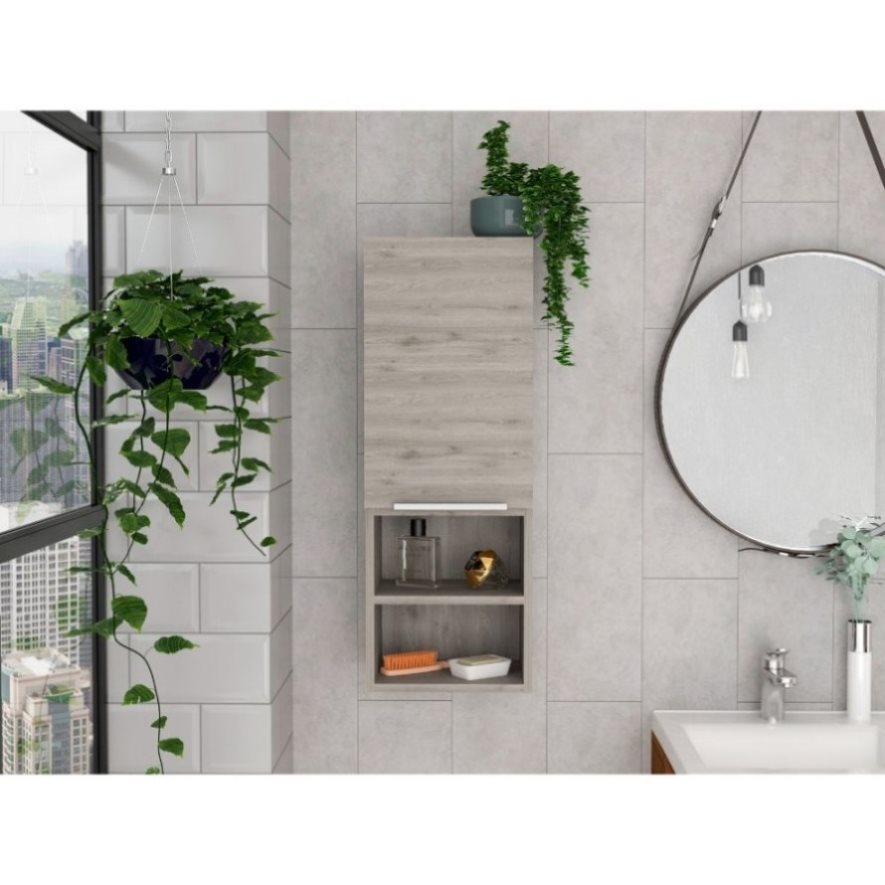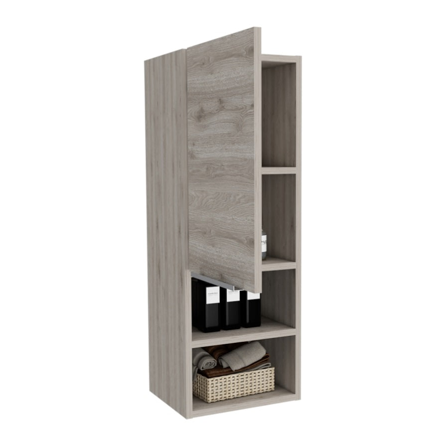 "The Milwaukee medicine cabinet is a very functional and spacious mirror medicine cabinet with great features that will stand out: A cabinet door that will give you an elegant look to your bathroom you so much desire. Inside the cabinet, you will find two interior shelves with plenty of room to keep your medicines, lotions, shampoos, or any other product you regularly use. It has two open shelves at the bottom of this cabinet to place your items elevated from the sink, keeping your bathroom organized and well maintained. It is manufactured with treated engineered wood to protect it from regular exposure to water and humidity in a bathroom. Product dimensions are 11.81"" W x 10.4"" D x 32.17"" H. Light Gray Finish."