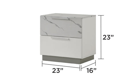 Mist Nightstand Two-Tone High-Gloss Marble & Lacquer Finish with Two Drawers, Velvet-Lined G150108676