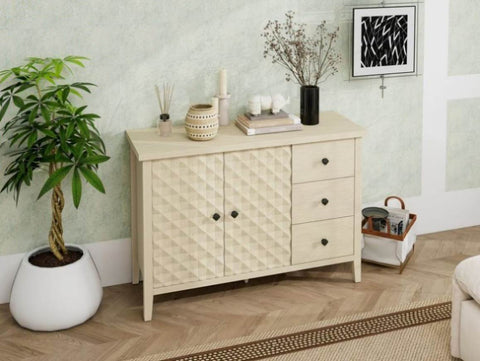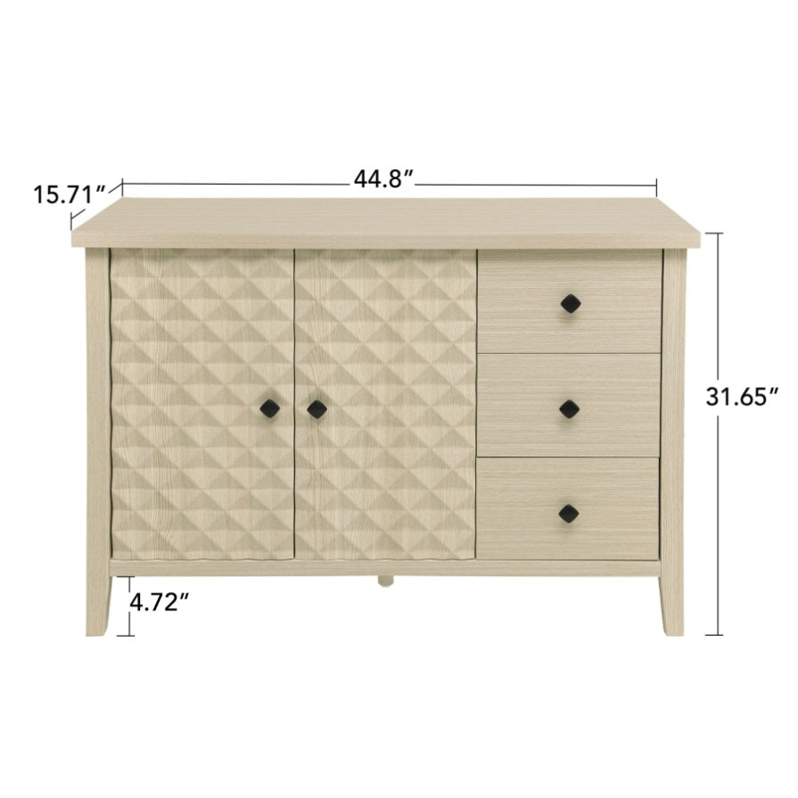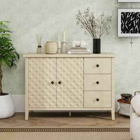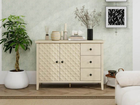 Modern 2 Door 3 Drawer Storage Cabinet,Buffet Cabinet with 2 Embossed Door for Living Room, Kitchen, W688P223053