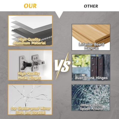 - This medicine cabinet has two layers of hidden storage compartments inside and one layer of storage compartments outside, which can meet your different storage needs