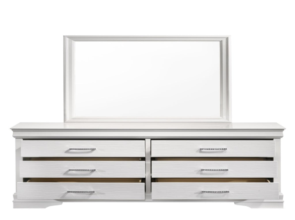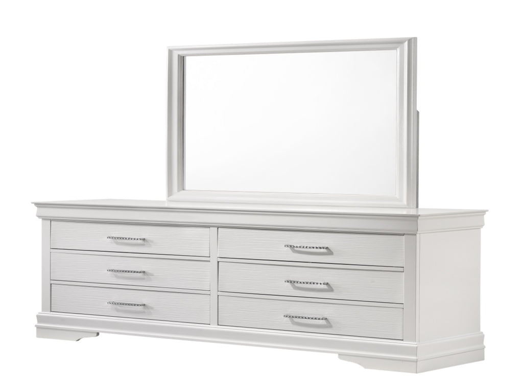 Immerse yourself in the perfect blend of storage and sophistication with this Brooklyn 6-drawer dresser, complete with a matching mirror. Crafted from high-quality manufactured wood, this dresser is designed to provide ample space for your clothing and essentials while enhancing the elegance of your bedroom.