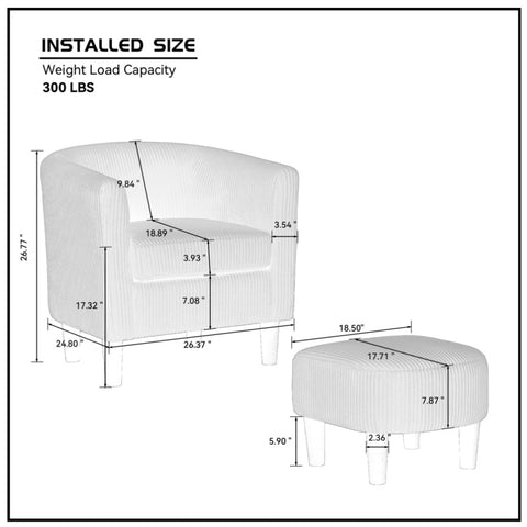 [Skin-Friendly&Sturdy Chair]The arm chair and ottoman are cushioned with soft sponge for added comfort. Corduroy is comfortable and skin-care.This accent chair for living room make of plastic legs and sturdy rubber wood plywood frame to ensure durability and stability of this reading chair.