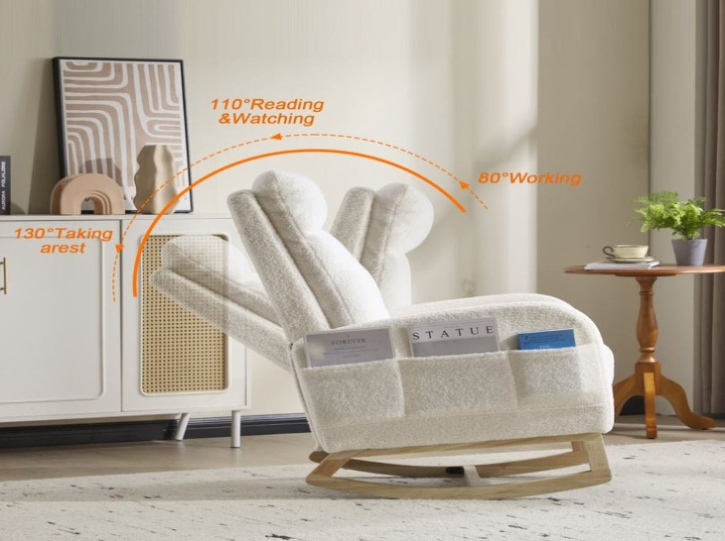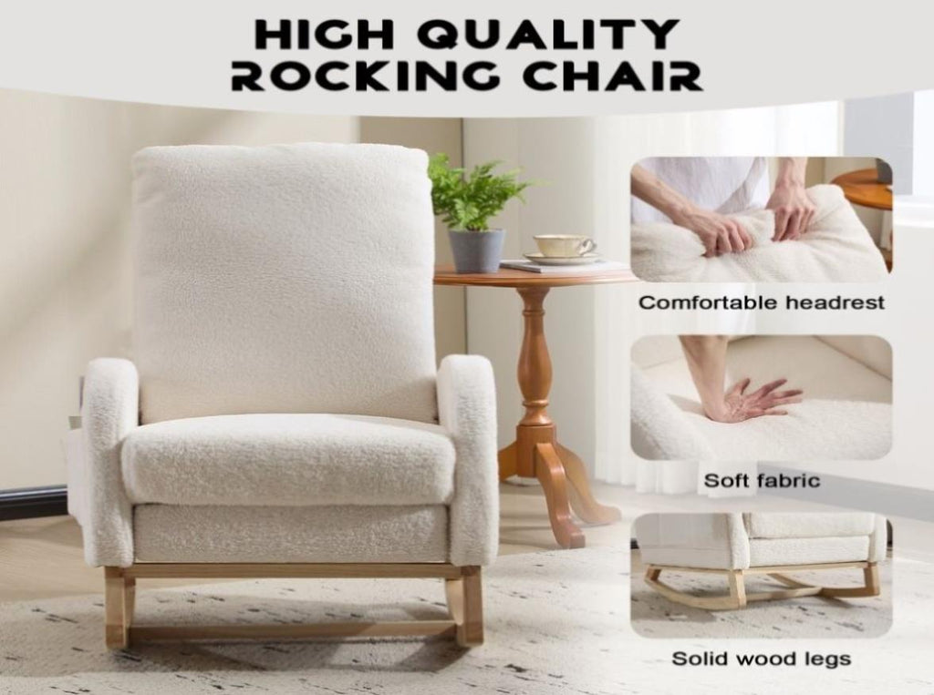 - [Multi-occasion Use] This modern small rocking chair nursery is elegant and luxurious, perfect for modern home decoration. Suitable for living room, bedroom, apartment, nursery, office, porch, balcony.
