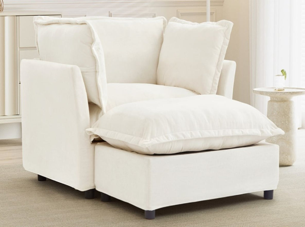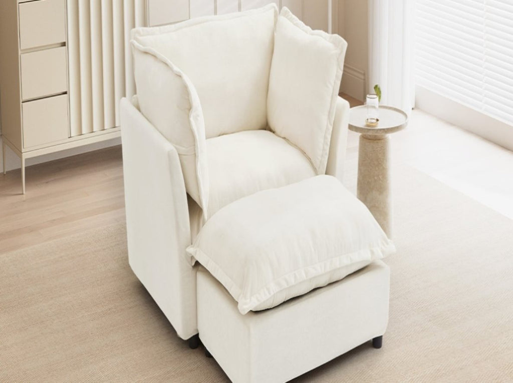 Movable Ottoman - This set includes a generously padded chair and a movable ottoman that can be positioned freely for customized comfort. Use it as a footrest, an extra seat, or pair it with the chair to create a cozy lounging setup.
