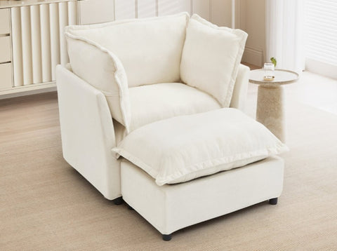 Experience the perfect blend of comfort, style, and versatility with this cozy chenille armchair and movable ottoman set. Upholstered in ultra-soft, durable chenille fabric, the generously padded seat and overstuffed pillows provide exceptional support for everyday lounging. Thoughtfully designed with elegant curved armrests and a seat width of 39.8 inches, this chair offers ample space for relaxation. The matching ottoman can be positioned freely to suit your needs—whether as a footrest, an extra seat, or paired with the chair for extended comfort. Ideal for small living spaces, reading corners, or bedrooms, this stylish duo brings both functional comfort and modern charm to any room.