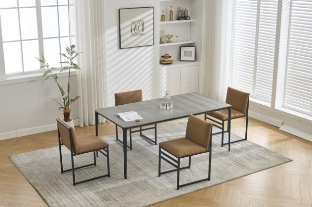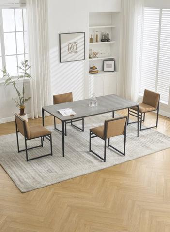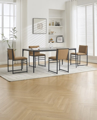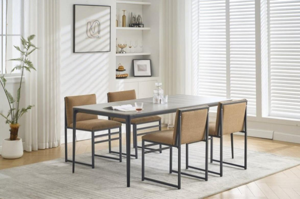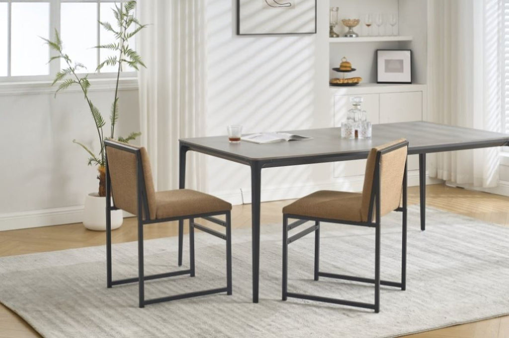 Modern Dining Chairs set of 2, Upholstered Linen cushions and backrest with minimalist craft iron W1249P257010