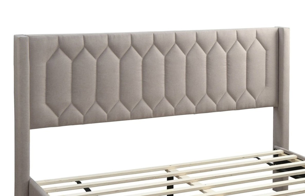 Crafted for both elegance and practicality, this bed is a perfect addition to any modern home. The eye-catching diamond-shaped stitching on the headboard adds a touch of modern flair, seamlessly integrating with a variety of decor styles. The footboard ensures a streamlined look, completing the bed’s clean design. The chic burlap fabric enhances its visual appeal, offering a natural texture that complements your space. Enjoy a sleek and streamlined look without the need for a box spring. This platform bed features built-in support legs and a sturdy base to provide reliable support for your mattress. This unique design element adds visual interest and a touch of artistry to your bedroom.