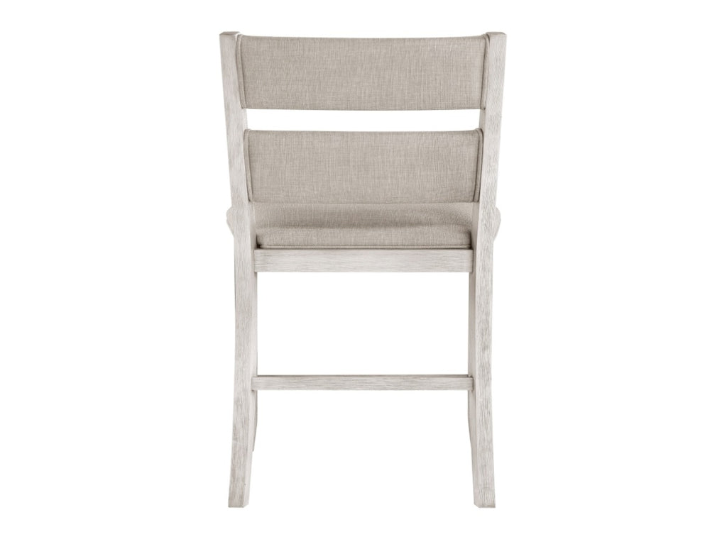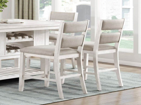 Elevate your casual dining or kitchen island setup with this stylish and comfortable counter height chair, perfect for achieving a modern farmhouse look. Featuring a durable wood frame with a distressed brushed antique white finish, this counter stool is built for stability and designed for maximum organic search appeal in rustic decor. The seat is upholstered in a soft, light gray textured fabric, offering comfortable and easy-to-clean seating. With its sturdy construction and impressive 300lbs weight capacity, this chair combines elevated style with reliable, everyday functionality.
