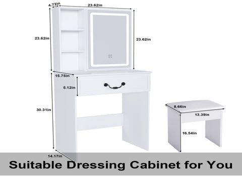 Modern Mini Dressing Table with LED-lit Mirror & Hidden Storage,Includes Padded Stool,Adjustable 17689128