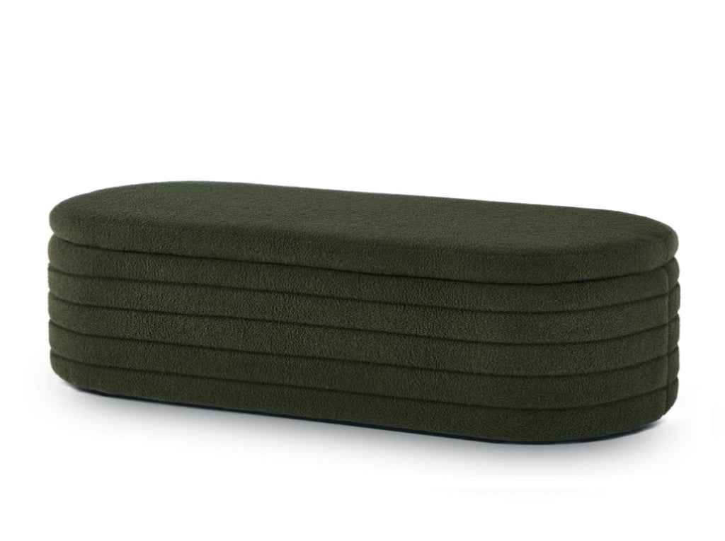 Modern Oval Storage Ottoman Bench, Upholstered Boucle Teddy Fabric of Bed Bench with Storage, W2186P193118