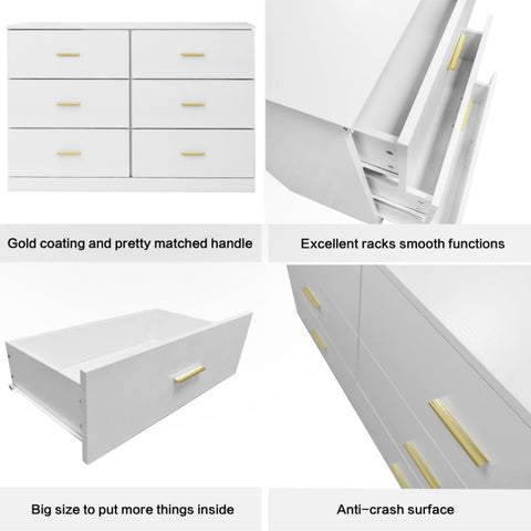 Modern White 6-Drawer Dresser for Bedroom - Ample Storage Wide Chest of Drawers, Sturdy & Safe W1785136021
