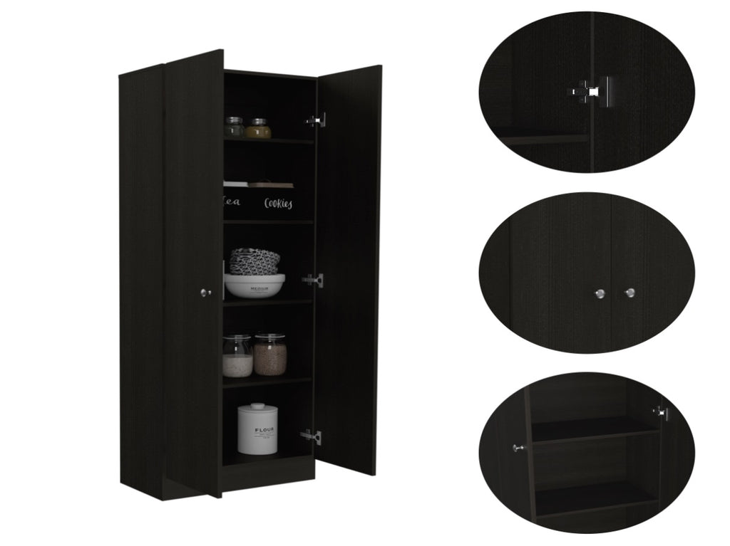 Multistorage Pantry Cabinet, Five Shelves, Double Door Cabinet -Black B20091964