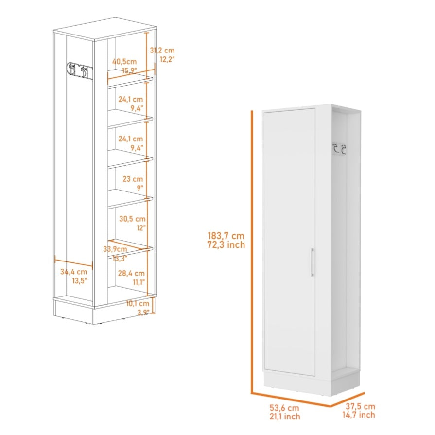 Nampa Storage Cabinet, Single Door, Broom Hangers ,White B128P148760