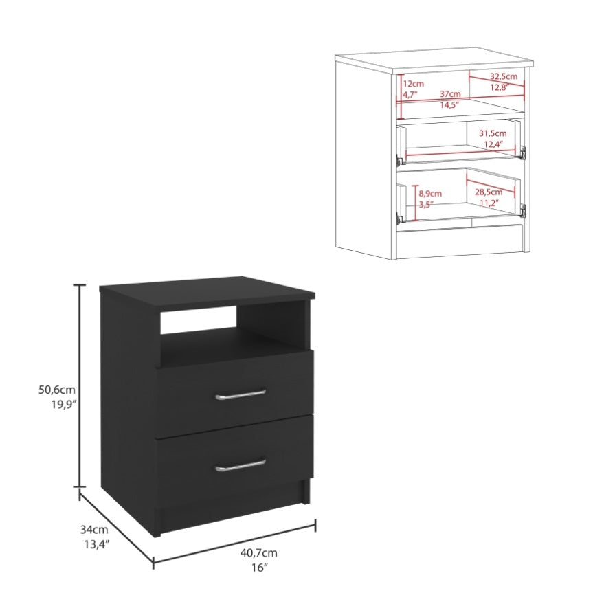 Napoles Nightstand , End Table, Side Table Superior Top, Two Drawers, One Shelf -Black B20091967