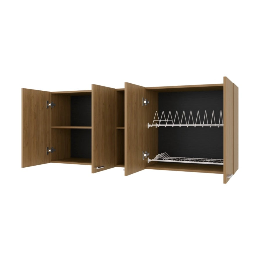 Natural Oak Wall Cabinet kitchen in Melamine with 4-Door and Open Storage B062P290289